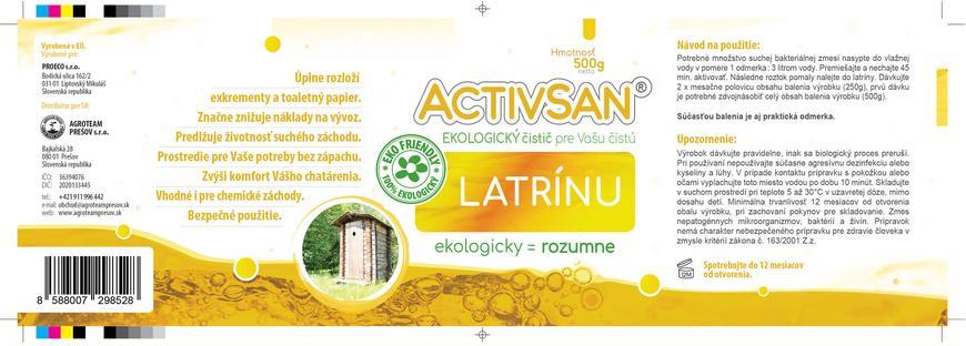 Prípravok Activsan Latrína 500g obsahuje iba voľne sa v prírode vyskytujúce baktérie a enzýmy, ktoré naštartujú biodegradačné proces (prestanú sa vytvárať usadeniny a kaly), čím sa optimalizuje bakteriálna účinnosť vo Vašej latríne a suchých WC. Výsledkom je úplné rozloženie suchých či tuhých exkrementov hromadiacich sa aj niekoľko rokov a zastavenie ich opätovného usadzovania. Ďalším preukázateľným faktorom je výrazné zníženie až odstránenie vznikajúceho zápachu.