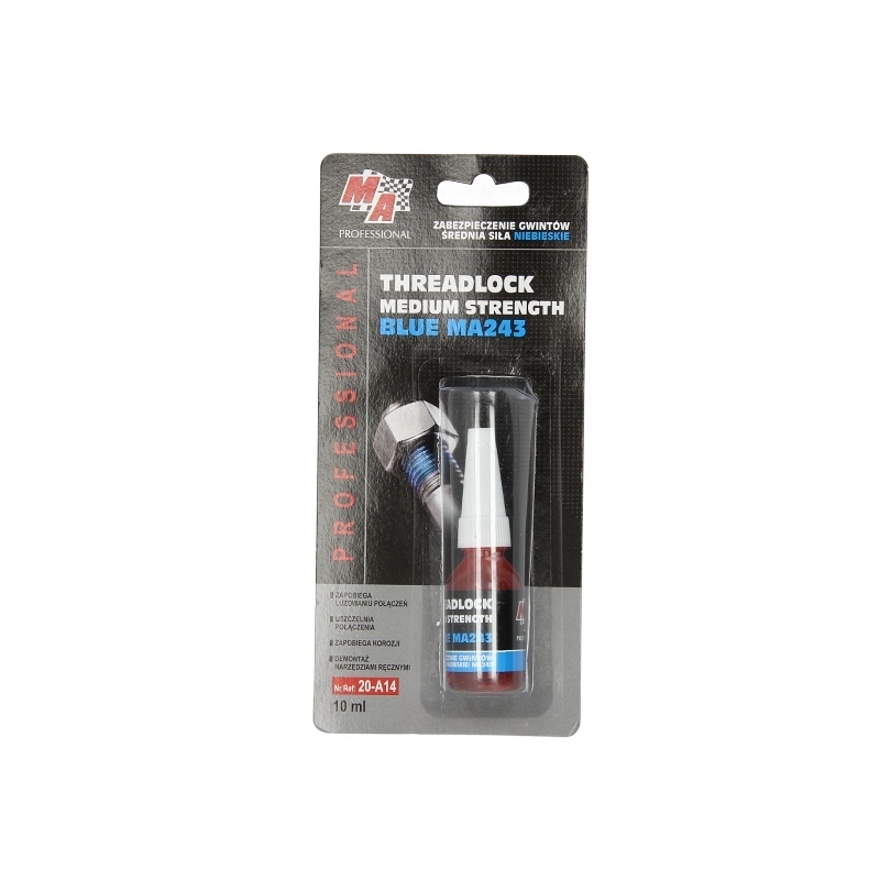 Prípravok na ochranu závity proti nežiaducemu uvoľneniu dosahujúce priemernú silu. To zabraňuje uvoľneniu častí vystaveným vibráciám, ako sú upevňovacie skrutky čerpadlá, motory, prevodovky, atď