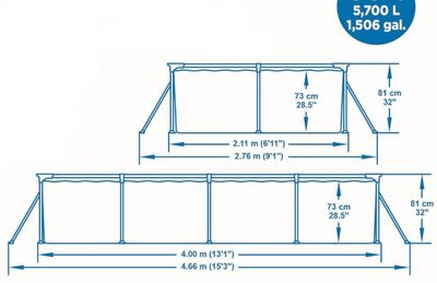 - Mimoriadne pevné bočné steny tohto bazéna sú konštruované z materiálu DuraPlus™, čo je 3-vrstvový vystužený materiál s polyesterovou mriežkou uloženou medzi dvoma vrstvami vysoko odolného PVC. Celková hrúbka steny je 0,40 až 0,80 mm v závislosti na veľkosti bazénu