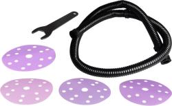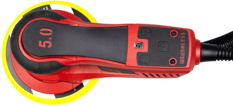 Orbitálne (excentrické) pohyby kotúča zvyšujú efektivitu brúsenia. Výnimočná životnosť - viac ako 1000 hodín. Nízke hodnoty vibrácií a jedinečná symetrická a ergonomická konštrukcia zaručujú, že nástroj možno používať dlhodobo bez únavy. Jednoduchá a rýchla výmena brúsnych papierov vďaka suchému zipsu. Disponuje ochranou proti vypnutiu. Balenie obsahuje flexibilnú hadicu na odsávanie prachu. Možnosť prispôsobenia otáčok v závislosti od typu a vlastností opracovávaného materiálu, otáčky sú konštantné aj pri vysokom zaťažení -