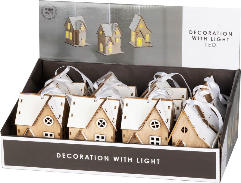 - Dekorácia Domček, 3xLED, mix vzorov, 1x CR2032, Sellbox 12ks