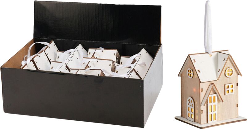 Vianočná dekorácia Domček je štýlový doplnok, ktorý vnesie do vášho domova teplo a útulnú sviatočnú atmosféru. Drevený domček s jemným LED osvetlením a decentnými detailmi pôsobí prirodzene a elegantne – ideálny na zavesenie, na poličku či ako doplnok k vianočnej výzdobe.