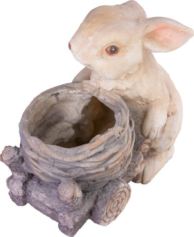 - Dekorácia MagicHome Gecco, Zajačik s vozíkom, magnesia, 34x19x39 cm