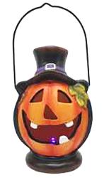 Dekorácia MagicHome Nature, Lampášik tekvica LED, s klobúkom, keramika, 15 cm