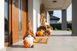 Dekorácia MagicHome Nature, Trpaslík s tekvicami, polyresin, 11x9x23 cm