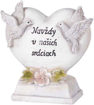 - Dekorácia MagicHome, Srdce s holubicami, polyresin, na hrob, 16x7x16,5 cm