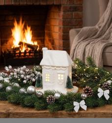 Vytvorte si čarovnú sviatočnú atmosféru s dekoráciou MagicHome Vianoce – keramický domček. Elegantný biely dizajn s detailmi zimnej krajiny a dvoma ozdobnými stromčekmi pôsobí štýlovo a moderne.