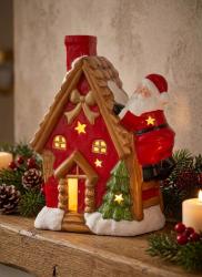 - Dekorácia MagicHome Vianoce, Domček so santom na streche, LED, terakota, 2xAAA, 27x13x34 c