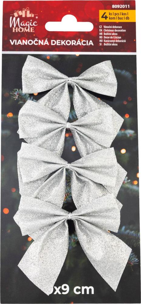 - Dekorácia MagicHome Vianoce, mašla, strieborná, bal. 4 ks, 9 x 9 cm