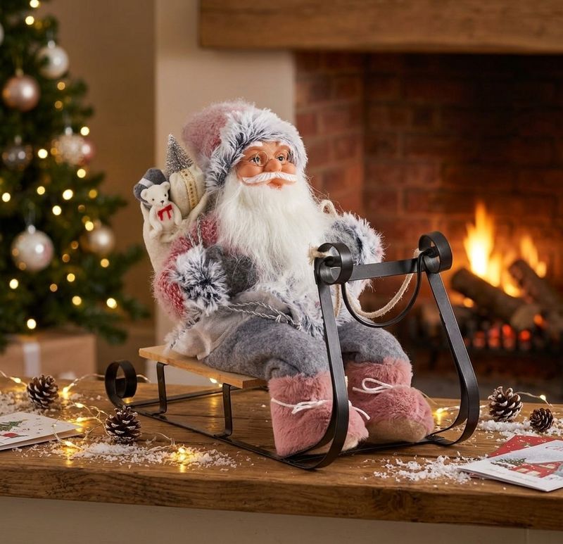 - Dekorácia MagicHome Vianoce, Santa na sánkach, sivo - ružový, 46 cm