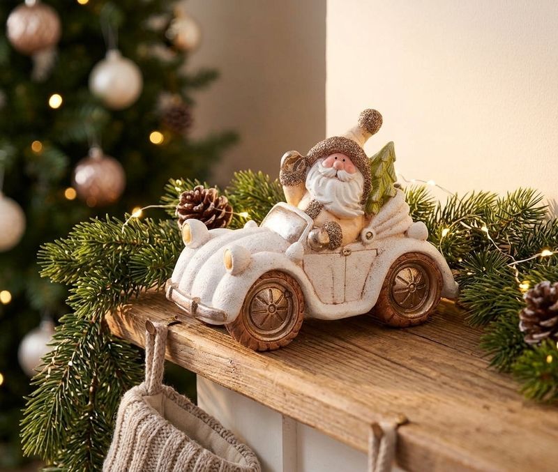 - Dekorácia MagicHome Vianoce, Santa v aute, retro, keramika, 46,50x19,50x31,50 cm