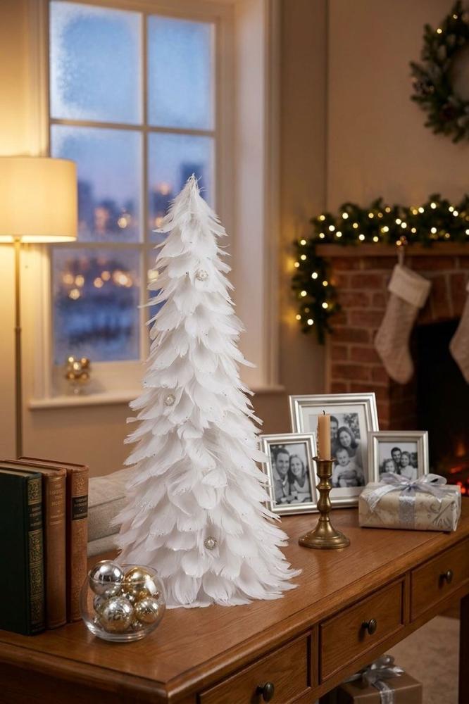 - Dekorácia MagicHome Vianoce, Stromček z páperia, biely, 22x46 cm