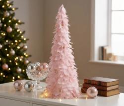 Dekorácia MagicHome Vianoce, Stromček z páperia, ružový, 24x60 cm
