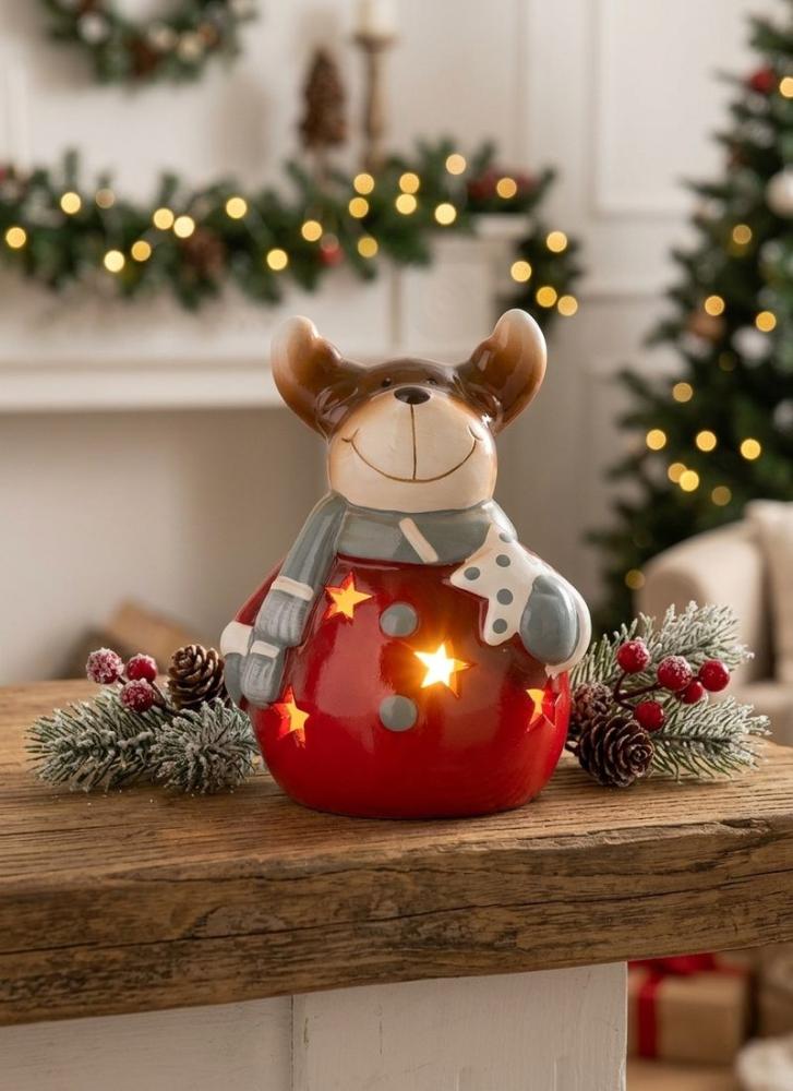 - Dekorácia MagicHome Vianoce, Usmiaty sob, LED, terakota, 8,5x8,2x12,5 cm