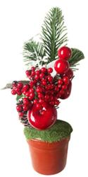- Dekorácia MagicHome Vianoce, Vetvičky v črepníku, s jablkom, 25cm, 2ks