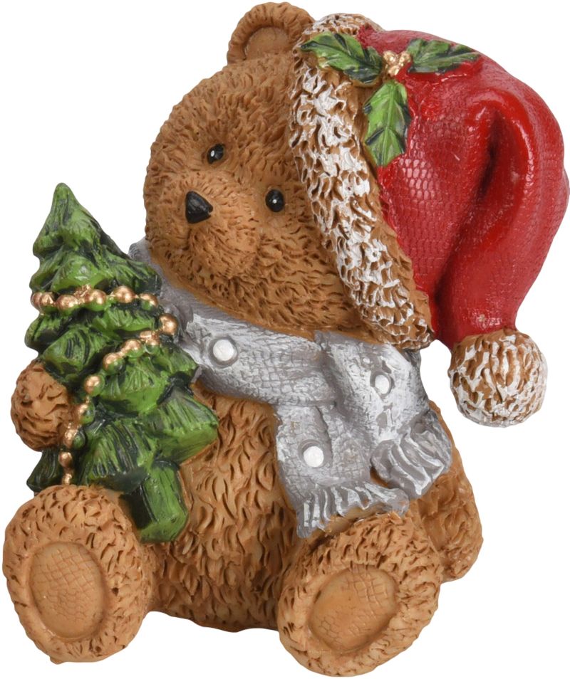 Dekorácia Medveď s čiapkov, 7x6x7 cm