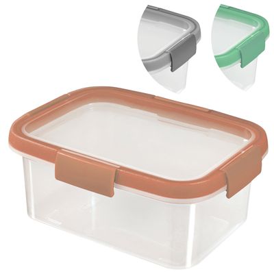 Praktická dóza s objemom 1,2 litrov na uskladnenie potravín, polotovarov a dokonca aj hotových pokrmov. Vďaka odolnému plastu môžete dózu ukladať na horúce aj studená miesta. Vhodné do mikrovlnnej rúry, umývačky aj do chladničky a mrazničky. Špeciálne úchyty uľahčujú otváranie dóz. Výrobky majú certifikát, ktorý povoľuje kontakt s potravinami. Výber farby (mint,sivá alebo broskyňová) nie je možné ovplyvniť. Rozmery: 15x20x9 cm.