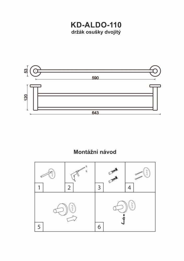 - Držiak na osušku, dvojitý, dĺžka 590mm, ALDO