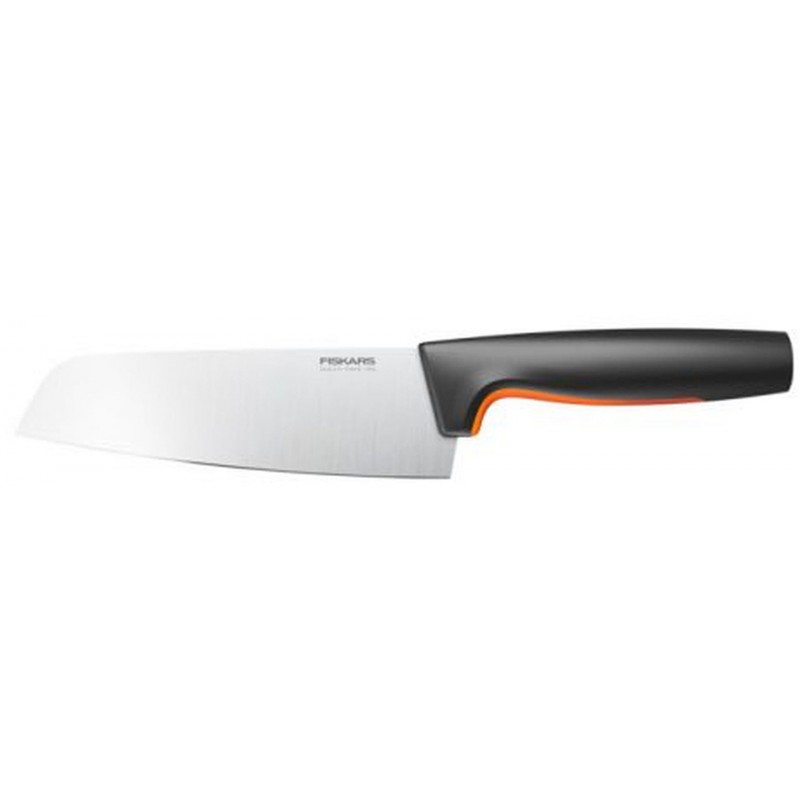 • Santoku nôž Fiskars Functional Form ™ je univerzálny nôž ázijského štýlu so širokou čepeľou navrhnutý pre pohodlné používanie a jednoduchú údržbu