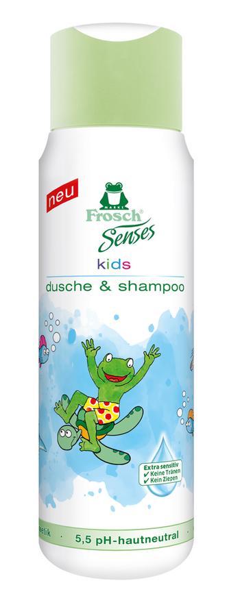 Detský sprchový gél a šampón Frosch Senses s prídavkom pantenolu šetrne umýva vlasy i pokožku celého tela. Šampón neštípe v očiach a je pH neutrálny. Výťažok z pšeničného proteínu uľahčuje rozčesávanie detských vláskov a dodáva im lesk.