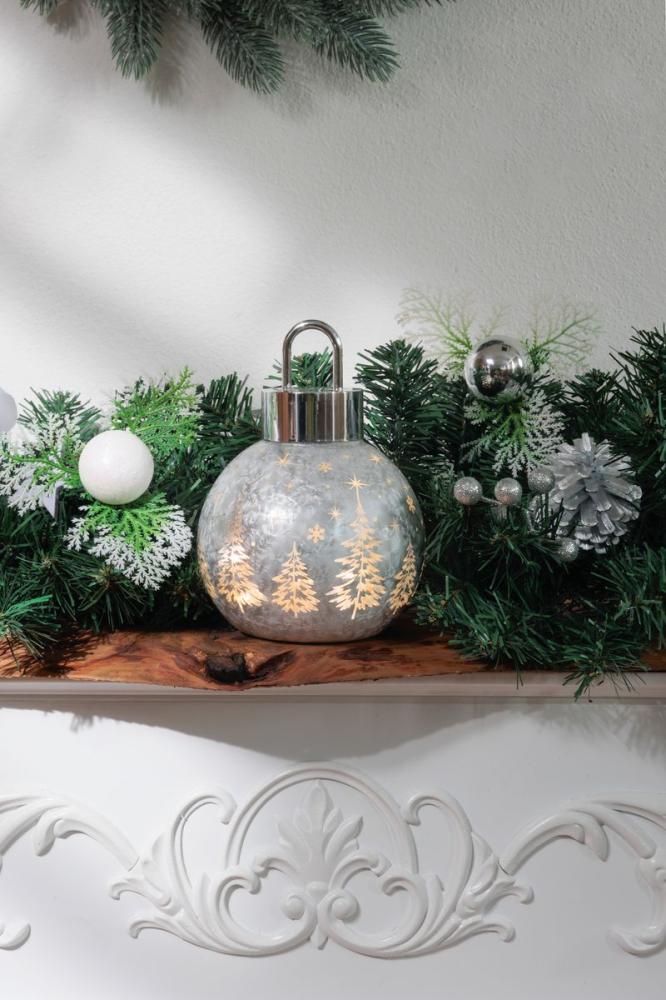Elegantná vianočná dekorácia MagicHome v tvare sklenenej gule v striebornej farbe dodá vášmu interiéru jedinečnú atmosféru sviatkov. Dekorácia je zdobená jemnými motívmi vianočných stromčekov a hviezd, ktoré v kombinácii s teplým bielym svetlom vytvárajú útulný efekt.
