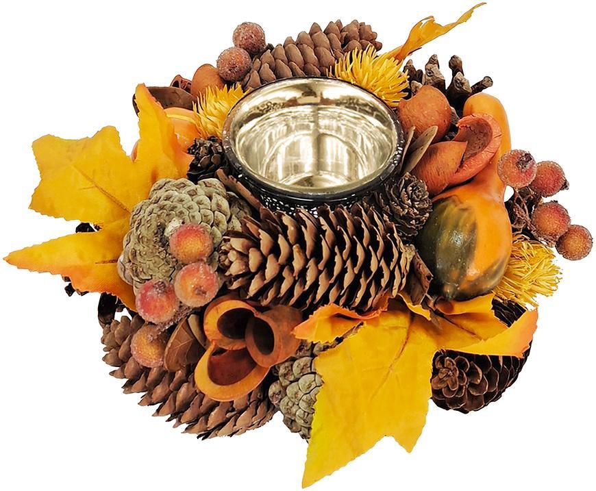Ikebana MagicHome Nature, jesenná, oranžová, s lístím, na sviečku