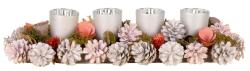 Ikebana MagicHome by nemala chýbať vo výbave vášho interiéru počas vianočných sviatkov. Je to vkusná prírodná, adventná ikebana so striebornými pohárikmi na sviečky. Farba je ružová. Jej priemer je 45cm.