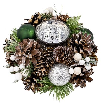 - Ikebana MagicHome Vianoce, prírodná, so zelenými guľami, na sviečku