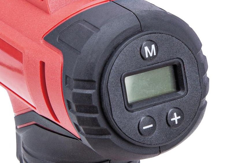 • Podsvietený displej a LED svietidlo umožňujú používanie akumulátorového kompresora aj za zníženej