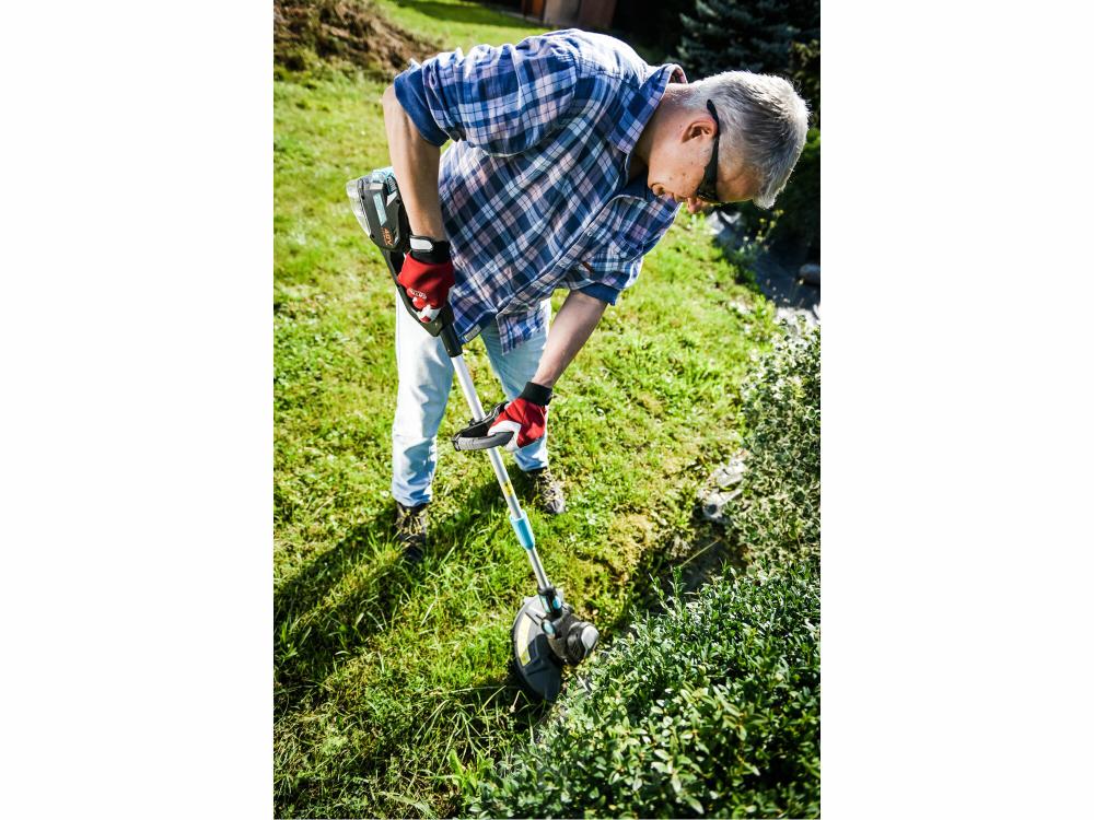 Veľmi tichá strunová akumulátorová kosačka, určená na udržiavanie malometrážneho záhradného trávnika, na úpravu okrajov a kosenie trávy v ťažko prístupných miestach, napr. pri obrubníkoch, pod lavičkami, okolo stromov, kríkov a pod. Vysokokapacitný akumulátor umožňuje dlhodobú prácu a veľký výkon. Vďaka napájaniu z akumulátoru už nie je nutné dávať pozor na napájací kábel, kosačka je tak ľahšia a manipulácia s ňou pohodlnejšia. Vďaka Li-ion akumulátoru je možné kosačku kedykoľvek dobíjať bez znižovania kapacity akumulátora. Li-ion akumulátor stráca energiu vplyvom samovybíjania veľmi pomaly a vydrží dlho nabitý.