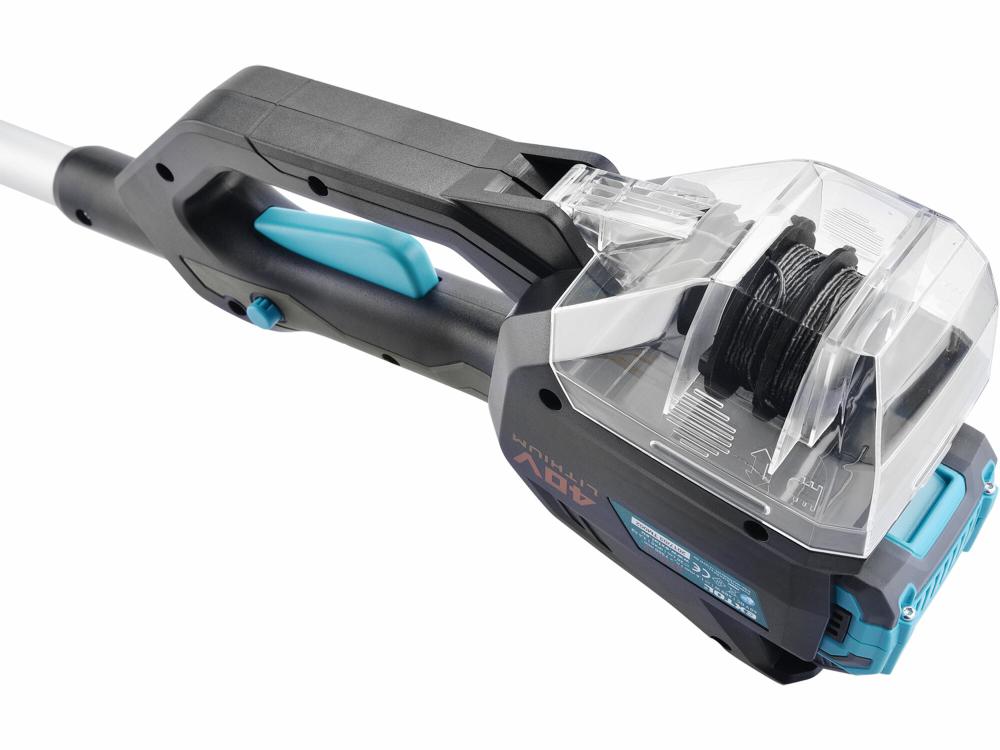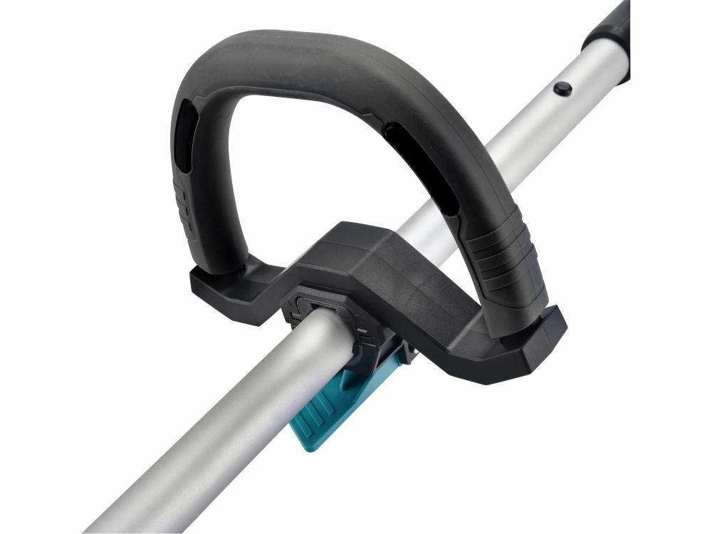 - pogumovaná rukoväť bráni vyšmyknutiu, tlmí vibrácie a spríjemňuje držanie pri práci, je v nej taktiež vložená náhradná cievka so strunou
