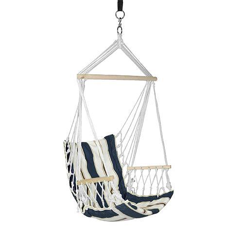 Bavlnené závesné modré kreslo je možné využiť vo vnútorných ale i vonkajších priestoroch. Kreslo je potrebné zavesiť na predom navŕtaný hák. Nosnosť je 150 kg a rozmery kresla sú 100 x 50 cm. Bavlnená sedacia časť je spevnené drevom, pre poskytovanie väčšej opory a pohodlia.