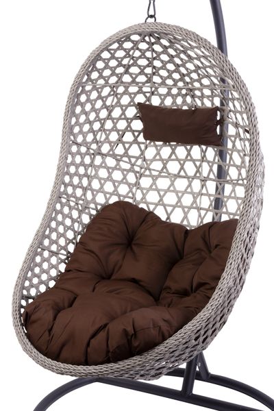 Ratanové kreslo je hnedej farby a hodí sa do každej domácnosti. Hojdacie kreslo je zavesené na príslušnej kovovej konštrukcii, ktorá poskytuje dostatočnú pevnosť pre hojdanie. Nosnosť kresla je 150 kg. Výška celej konštrukcie, spolu so stojanom na zavesenie kresla je 200 cm. Hojdačka je doplnená o bavlnenú podušku hnedej farby.