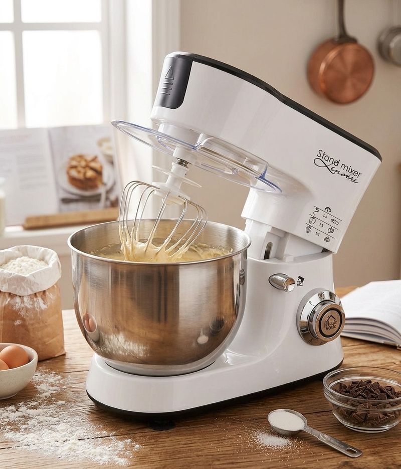 Luxusný kuchynský robot s tichým vysokovýkonným motorom. Robot je vybavený 3 rôznymi nadstavcami, ktoré sú ovládané planetárnym systémom miešania. Spolu so 6 stupňovým nastavením rýchlosti bude hnetenie, šľahanie a miešanie podstatne rýchlejšie a pohodlnejšie. Vo veľkokapacitnej nerezovej miešacej nádobe spracujete aj väčšiu masu cesta. K robotu je možné dokúpiť aj mlynček na mäso a nádobu na mixovanie, čo z neho robí multifunkčné zariadenie.