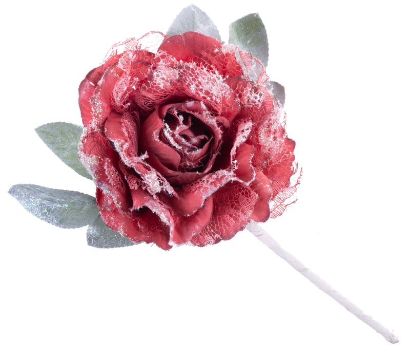 Kvet MagicHome, pivónia s listom, červená, stonka, veľkosť kvetu: 12 cm, dĺžka kvetu: 23 c