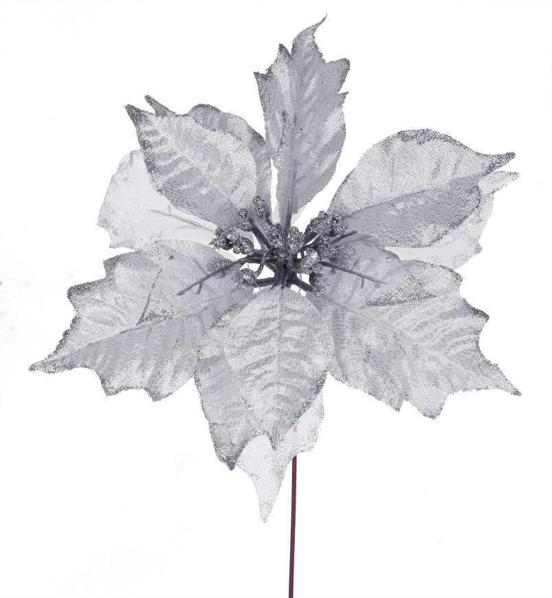 • Kvet MagicHome Vianoce Poinsettia Glitedgeer.Silver, strieborná, stonka, veľkosť kvetu: 23