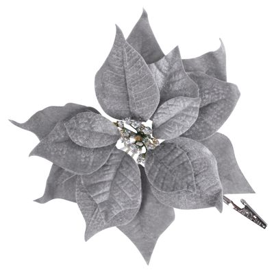 - Kvet MagicHome Vianoce Poinsettia, so štipcom, strieborný, veľkosť kvetu: 25 cm, dĺžka kve