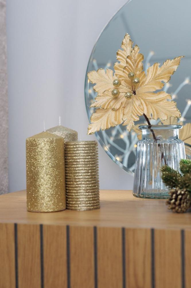 - Kvet MagicHome Vianoce, Poinsettia, zlatá, 30 cm, veľkosť kvetu: 20,5 cm
