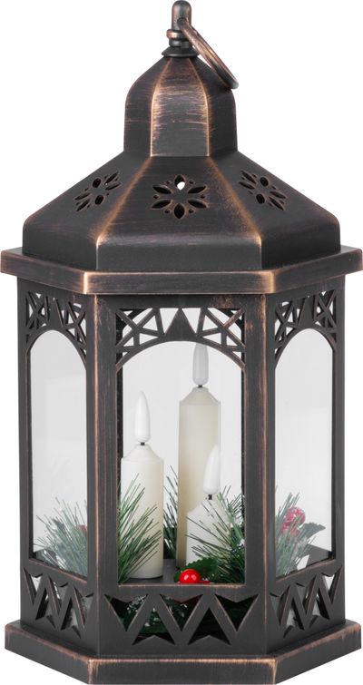 Lampáš MagicHome Vianoce Morocco, 3x LED sviečky, čierny, 3xAAA, plast, časovač, 18x15x32