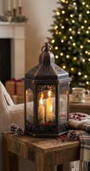 - Lampáš MagicHome Vianoce Morocco, LED teplá biela, sviečky, čierny, 3xAAA, plast, časovač,