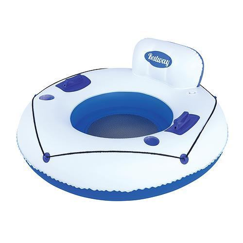 Nafukovací kruh je ideálny na relaxáciu na slnku pri vode s priateľmi a rodinou. Nafukovací kruh je vyrobený z odolného materiálu, poskytuje zabudované operadlo pre pohodlie a podporu, držiak na pohár na uloženie vášho studeného nápoja a sieťkové dno/ sedadlo, ktoré vás udrží v chlade. Na rukoväte môžete pripevniť lano a užiť si skvelú jazdu!