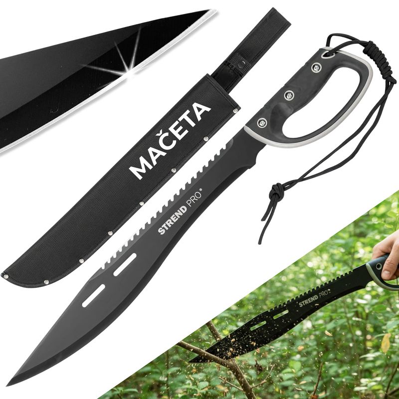 - Mačeta Strend Pro Tactical, s puzdrom, s pílkou, s ochranou ruky, čierna, 61 cm