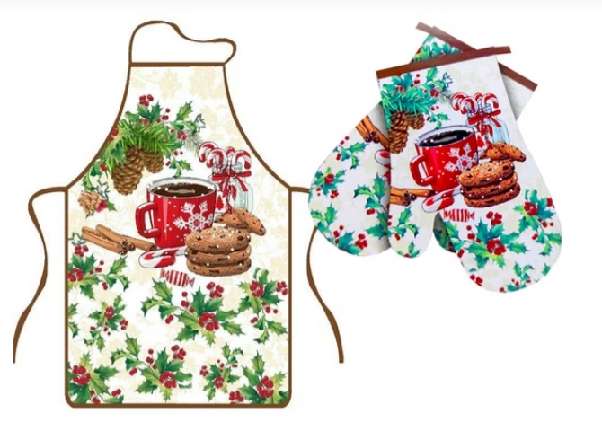 Obsahuje 2 praktické kúsky: chňapku a zásteru