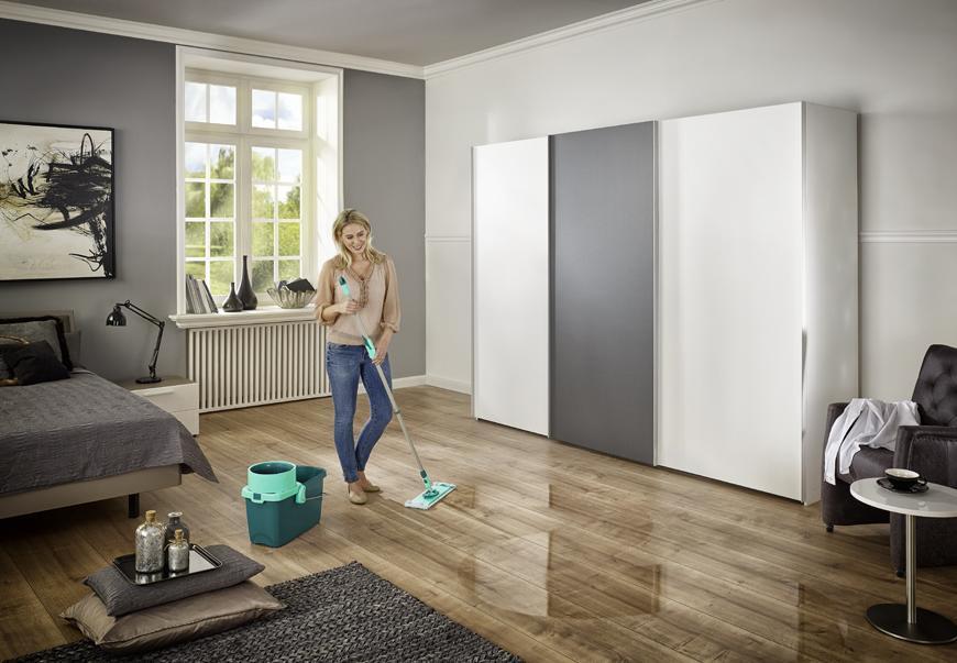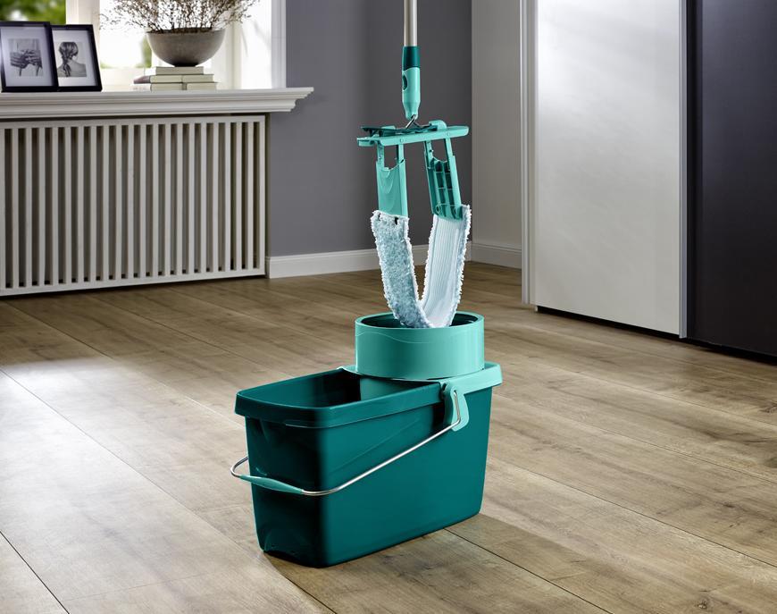 Rotačný upratovací set určený na umývanie podláh bez kontaktu rúk a špinavej vody. Pre všetky typy podláh – parkety, lamino a drevo. Novinkou proti minulej verzii je rotačný systém umiestnený priamo v držadle, možnosť rýchleho ukončenia priamo užívateľom, nová veľká rotačná komora, ktorá sa dá jednoducho a rýchlo zasadiť do vedra, univerzálne 20l vedro s jedným držadlom. 360° rotácia umožňuje vytieranie do osmičiek. Návlek prakticky umiestnený po celej dĺžke vytieracej plochy. Vymeniteľné návleky zo špeciálnych mikrovlákien s výbornou absorpciou nečistôt, možné prať v práčke bez aviváže. Záber mopu 33 cm. Záruka 3 roky.