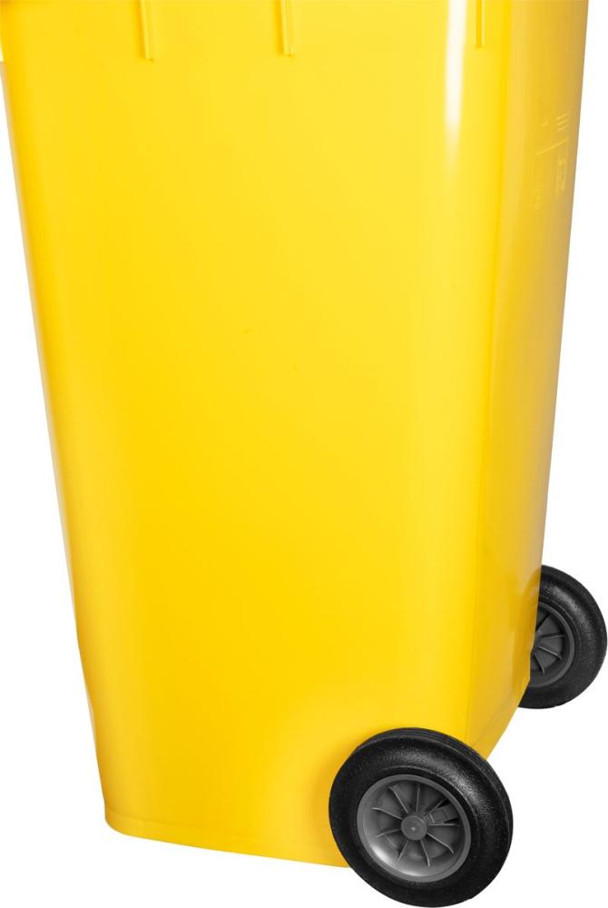 Nádoba na odpad ICS GB4 s objemom 240 litrov v žltej farbe je robustná a praktická popolnica určená na zber a skladovanie komunálneho odpadu. Vyrobená z odolného plastu, ktorý je rezistentný voči poveternostným vplyvom, UV žiareniu a mechanickému poškodeniu, čo zabezpečuje jej dlhú životnosť.