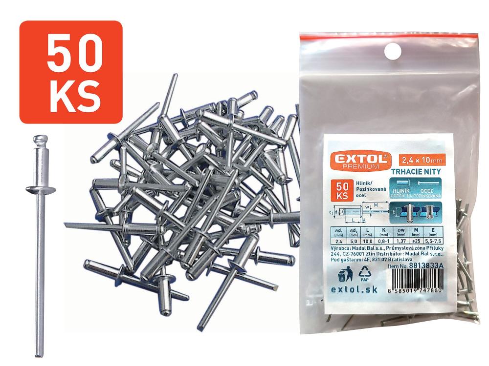 Nity trhacie hliníkové 2,4x10mm, 50ks, EXTOL PREMIUM