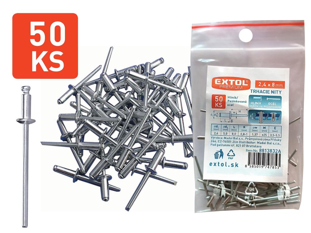 • Nity trhacie hliníkové 2,4x8mm, 50ks, EXTOL PREMIUM