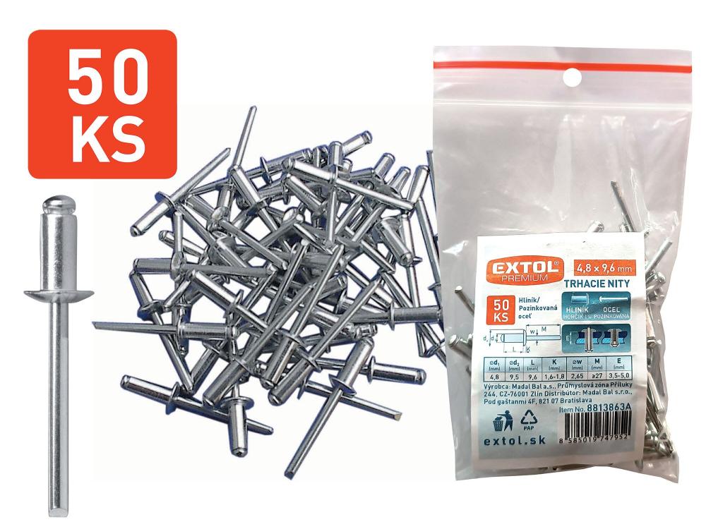 • Nity trhacie hliníkové 4,8x9,6mm 50ks, EXTOL PREMIUM