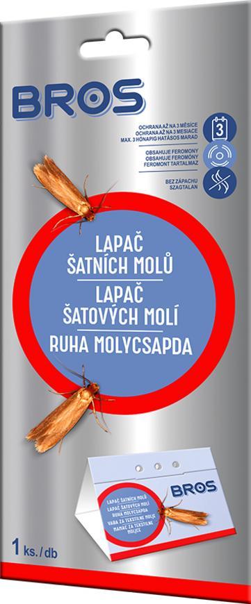 Pasca Bros je bez zápachu a slúži na sledovanie prítomnosti molí šatníkových v skriniach a zásuvkách. Lepidlo s feromónom prirodzene láka a účinne chytá dospelých samcov moľa šatníkového po dobu až 3 mesiacov. Pasca neobsahuje chemické insekticídy.