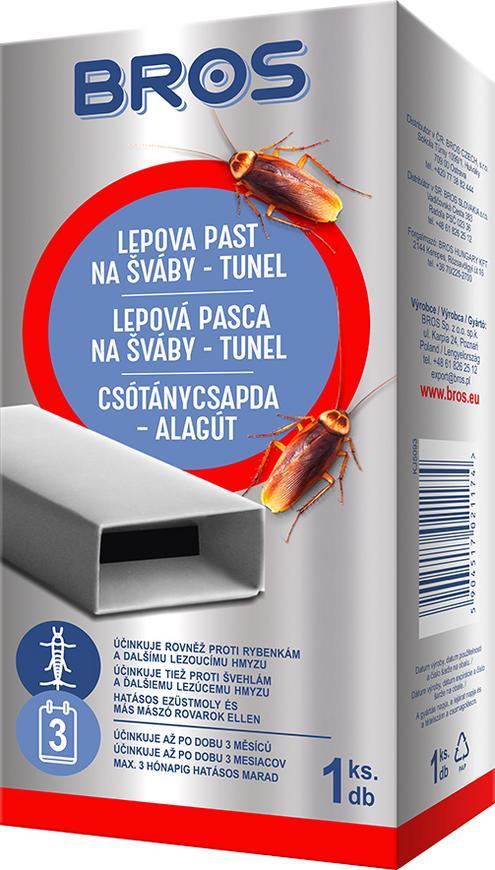 - Lepová pasca na šváby Bros v podobe tunela efektívne zachytáva šváby a strieborné mole.